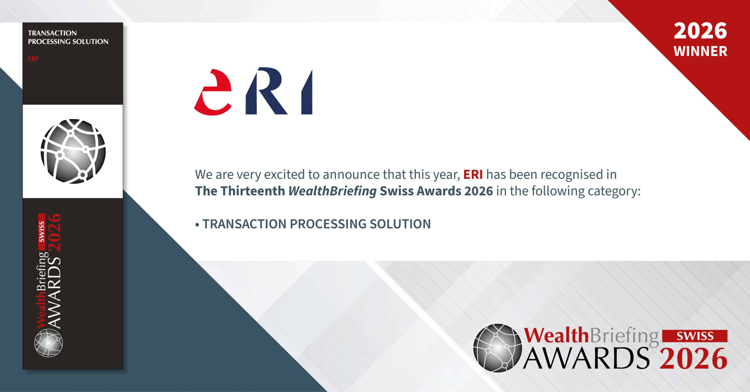 ERI awarded Best Transaction Processing Solution at the WealthBriefing Swiss Awards 2026